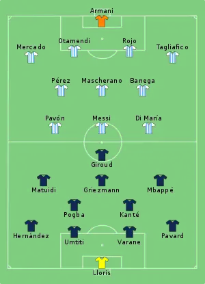 3. Tactical Line-up – Round of 16 – France v Argentina (PDF). FIFA.com. Fédération Internationale de Football Association. 30 червня 2018. Процитовано 30 червня 2018.