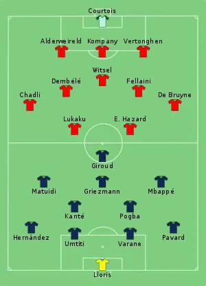 38. Line-ups – Semi-final – France v Belgium (PDF). FIFA.com. Fédération Internationale de Football Association. 10 липня 2018. Процитовано 10 липня 2018.