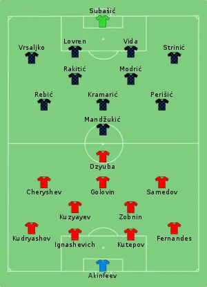 35. Tactical Line-up – Quarter-final – Russia v Croatia (Pdf). FIFA.com. ФІФА. 7 липня 2018. Процитовано 7 липня 2018.