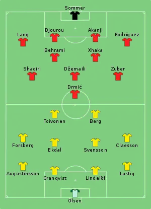 21. Tactical Line-up – Round of 16 – Sweden v Switzerland (PDF). FIFA.com. Fédération Internationale de Football Association. 3 липня 2018. Процитовано 3 липня 2018.