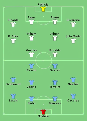 6. Tactical Line-up – Round of 16 – Uruguay v Portugal (PDF). FIFA.com. Fédération Internationale de Football Association. 30 червня 2018. Процитовано 30 червня 2018.