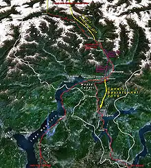 | Пролягає під | Монте-Ченері |