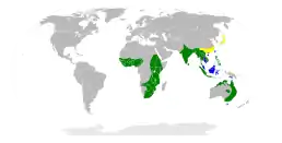 Головним чином зустрічається від східної частини Африки вздовж тропічної зони південної Азії і до Австралії.