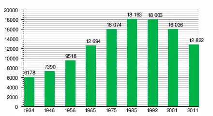 За даними перепису населення 2011 року у місті проживали 12 822 особи.
