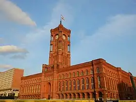 Черво́на (Берлі́нська) ра́туша (нім. Das Rote Rathaus) побудована із традиційної для Берліна червоної цегли в 1861-1869. За стилем ратушу архітектора Г. Ф. Веземана можна віднести як до ренесансу так і до готики. Архітектурним взірцем послугувала ратуша у місті Торунь, що у Польщі (див. Торунська ратуша).