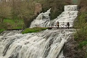 - Прорив перемички між «паралельними» ділянками річища був природним, водоспад виник без людського втручання.