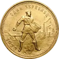 Грошова одиниця Радянської Росії, а згодом СРСР, запроваджена у 1922 з метою стабілізації валюти. Один червінець дорівнював 10 карбованцям. Державний банк розпочав випуск банківських білетів вартістю 1,2,3,5, 10 та 25 червінців. Золотий вміст банкнот становив 7,7423 г чистого золота, тобто він прирівнювався до дореволюційної золотої монети вартістю 10 рублів.