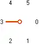 Наприклад, правило {2, 0, 0}, що задає хробака, зображеного праворуч, каже, що при першому виборі (всі 5 напрямків незафарбовані) черв'як повертає направо-назад, а при двох наступних (зафарбовано напрямок направо-назад і зафарбовані напрямки наліво вперед, наліво-назад і направо назад відповідно) обирає рух прямо. Подальші його вибори не вказані, оскільки черв'як втретє повертається в початок і помирає. Якщо обмежитися випадками, в яких черв'як робить перший поворот направо, то потенційно існує 1 296 можливих правил[6]. Однак з урахуванням того, що черв'як часто вмирає, не встигнувши здійснити всі можливі вибори, а тому немає сенсу відрізняти ці правила, їх залишається всього 412[4]. Серед них 336 кінцеві, 73 нескінченні і циклічно повторюються із зсувом, для двох нескінченність не доведена, але припускається (це правила {1,0,4,2,0,2,0} і {1,0,4,2,0, 1,5}), а поведінка ще одного невідома (правило {1,0,4,2,0,1,5}).