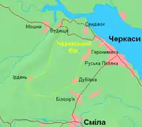 Черкаський бір має площу в 28,5 тисяч га, а разом з Ірдинським болотом та Мошногірським кряжем становить 41,7 тисяч га.