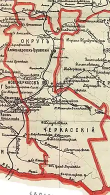 На 1913 рік до складу Черкаського округу входили 16 юрт станиць й 4 волості[5].