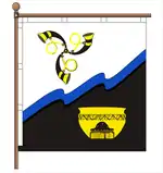 Квадратне полотнище рівно розділене косою перев’яззю. Прапор відтворює кольори та елементи Герба села.