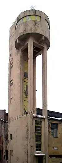 | Найважливіші споруди | Канатний цех з водонапірною баштою заводу «Червоний гвоздильщик», Ленінград, (1931) |