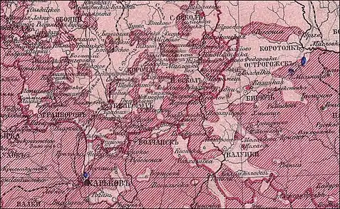 1850 року в Новооскольському повіті проживало 60044 (58,9%) українців і 41888 (41,1%) росіян.