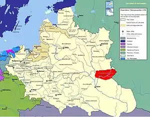 - Любецький повіт — 1482 року з Київського воєводства; повітове місто — Любеч;