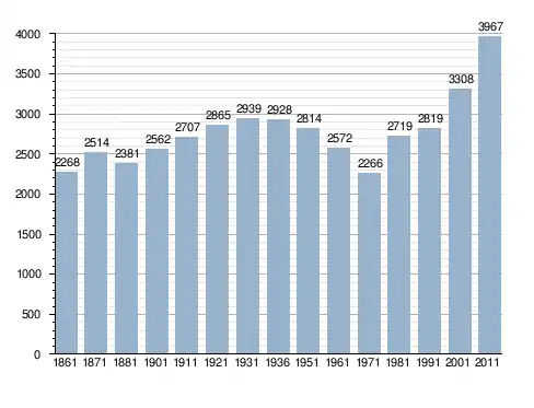 Станом на 31 грудня 2014 року в муніципалітеті офіційно проживало 500 іноземців з 31 країни, серед них 66 громадян країн Євросоюзу та 10 громадян України.[4]