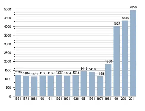 Станом на 31 грудня 2014 року в муніципалітеті офіційно проживало 236 іноземців з 35 країн, серед них 95 громадян країн Євросоюзу та 8 громадян України.[4]