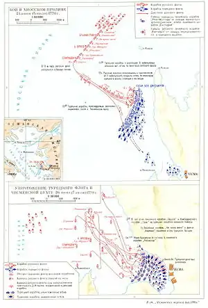 Чесменська битва — морська битва між російським та османським флотом під час російсько-турецької війни 1768—1774 років, яка відбулась 24—26 червня (5—7 липня) 1770 року в бухті міста Чешме (тур. Çeşme) в Хіоській протоці (Егейське море).