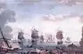 | 1 лінійний корабель, близько 660 чоловік | Знищено: 15 лінійних кораблів, 6 фрегатів, велика кількість малих суден, близько 11 000 чоловік, Захоплено 1 лінійний корабель, 5 галер | ||||||