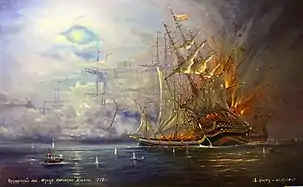 «Епізод морського бою». На картині зображений вибух османського корабля.