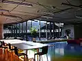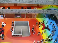 Підлога атріуму та підлоги всіх поверхів, починаючи з третього, розмальовані різними кольорами. Всередині підлоги атріуму знаходиться червона пляма, від якої концентрично розходяться більші плями інших кольорів веселки аж до синього. Кольори на підлозі позначають справжнє механічне навантаження на підлогу, де червоні області зазнають найбільшого навантаження, а сині найменшого. Такий дизайн є дуже наочним для студентів архітектурних та інженерних спеціальностей.[4]