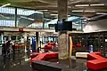 На першому поверсі є парадні входи з чотирьох сторін будівлі, а також вхід з літньої тераси кафе до приміщення кафе. Всі перелічені вище приміщення прилягають до фасаду будівлі, в центрі будівлі знаходиться невеличка зала із довідковим бюро та зі сходами на другий поверх, яку відділяє від інших приміщень фоє. Над цією залою знаходиться величезний атріум, який простягається від підлоги другого поверху аж до скляного даху будівлі. Поверхи з третього по шостий прилягають до фасаду, а всередині них знаходиться порожнеча - атріум. Подібним чином побудований інтер'єр Бібліотеки КПІ.