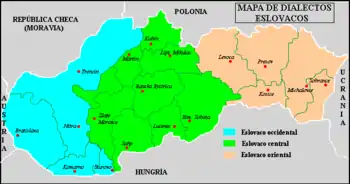 - Південно-західні говори (Попрад, Пряшів, Спішська Нова Весь, Кошице);