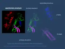 Четвертинна структура — спосіб укладання в просторі окремих поліпептидних ланцюгів, що володіють однаковою (або різною) первинною, вторинною або третинною структурою, і формування єдиного в структурному і функціональному відношеннях макромолекулярного утворення. Специфічність четвертинної структури білків проявляється в певній конформаційній автономії поліпептидних фрагментів, що входять до складу макромолекули білка. Вклад гідрофобних взаємодій у стабілізацію третинної і четвертинної структури білків досить значний : у разі третинної структури на їх частку припадає, більше половини стабілізуючої сили.