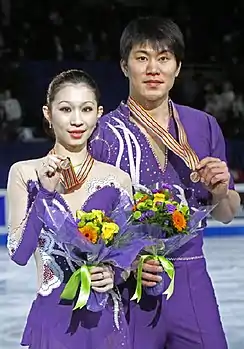 | Дан Джанґ і Гао Джанґ на подіумі Чемпіонату Чотирьох Континентів з фігурного катання 2009 року, де вони стали бронзовими призерами | ||