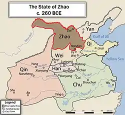 Царство Чжао (403 до н. е. — 222 до н. е. роки) — середньовічна держава в Китаї, що утворилася внаслідок розпаду царства Цзінь у 403 році до н. е. Тривалий час вело боротьбу за владу з царствами Цінь, Вей і Ці. У 222 році до н. е. війська Чжао зазнали остаточної поразки у війні з Цінь, внаслідок чого царство припинило існування.