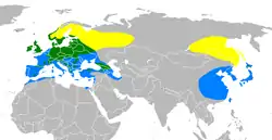 В Україні гніздиться в Карпатах і Криму, під час осінніх і весняних кочівель — на всій території.