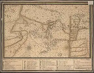 Карта региона с рассеянными Chiquitanía сокращения иезуитов 1789 года