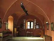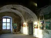 На першому, відреставрованому, поверсі фортеці — шість кімнат і зала з великим вестибюлем. Тепер тут розташовані експозиції кельтської та скіфської культур, а також портрети усіх власників замку. Другий поверх схожий за плануванням — шість малих кімнат, велика зала і довгий коридор. Також у замку є декілька «таємних переходів» — подвійних стін, котрі господарі з радістю показують відвідувачам.