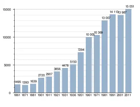 Станом на 31 грудня 2014 року в муніципалітеті офіційно проживав 981 іноземець з 45 країн, серед них 555 громадян країн Євросоюзу та 64 громадяни України.[4]