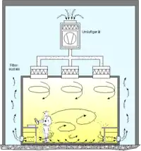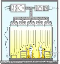 Уилліс Уитфілд розробив 1961 теорію ламінарних потоків повітря, що подавались через фільтри і проходили направлено через приміщення без надміру турбулентних вихорів та виводились через перфоровану фальшпідлогу. При цьому потік повітря видаляє з робочих зон приміщення частки забруднення.
