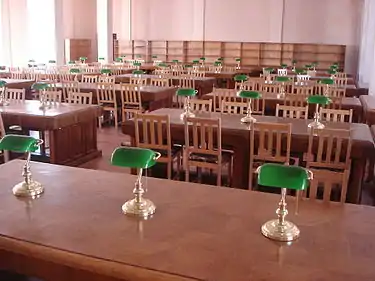 Читальні зали зазвичай пропонують читачим можливість роботи за письмовим столом. У більшості випадків до столу підведений струм для настільної лампи та розетка для використання власного комп'ютера.