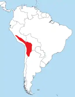 Вид поширений в Південній Америці. Трапляється в Андах в центральному та східному Перу, Болівії, на півночі Чилі та північному заході Аргентини (провінція Катамарка).