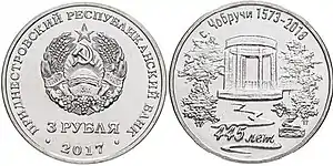 28 вересня 2018 року Придністровський республіканський банк ввів в обіг пам'ятні монети з недорогоцінних металів номіналом 3 рублі, присвячені 445 років селу Чобручі із серії «Придністров'я - рідний край». Тираж нової монети — до 30 тисяч штук, повідомляється на сайті ПРБ. Пам'ятні монети є грошовими знаками Центробанку та вводяться в обіг на території Придністров'я і приймаються за їх номінальною вартістю.