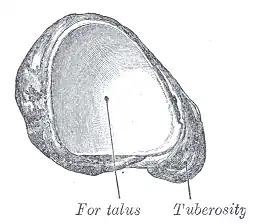 Таранно-п'ятковий і таранно-п'ятково-човноподібний суглоби (вигляд зверху, таранна кістка видалена)