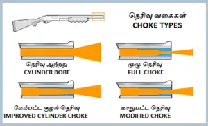При цьому для рушниць 12 калібру різниця між діаметрами обох циліндричних частин коливається, залежно від системи, між 0,6 та 1,2 мм. В залежності від цієї різниці чоки діляться мисливцями на посилені, повні, половинні і слабкі. Описана система висвердлювання значно збільшує початкову швидкість і купчастість бою дробом. Зі стволів із таким висвердленням можна стріляти і кулею за умови, щоб діаметр її не перевищуватиме діаметра звуженої частини ствола; в продажу є, однак, спеціальні кулі для чок-борів, які складаються зі свинцевого циліндра, який прилажено до дерев'яного рубчатого циліндра дещо збільшеного калібру, який направляє свинцеву частину снаряда і частково оберігає від прориву газів.