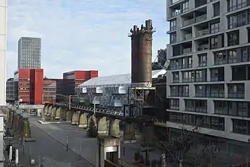 Залишки рудного двору і бункерної естакади колишнього доменного цеху металургійного заводу у Еш-сюр-Альзет.