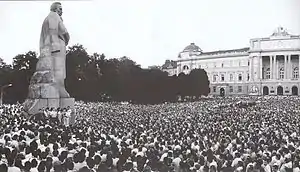 4 серпня 1988 у Львові біля Університету ім. І.Франка відбувся несанкціонований мітинг, на який зібралось декілька тисяч осіб. Газета «Вільна Україна» писала, що правоохоронні органи вжили оперативних заходів до його припинення. Особи, які порушували громадський порядок і виявили непокору працівникам міліції, затримані, ведеться розслідування. Фактично ж у цей день, як відзначалось у протестній телеграмі Виконавчого комітету Української Гельсінської спілки, надісланій 6 серпня 1988 р. Михайлу Горбачову, «органи міліції КДБ, шоста рота спеціального призначення жорстоким і цинічним способом розігнали мітинг біля Львівського університету. На людей нацьковували собак, їх тягли до машин за волосся й ноги. Багатьох били, в тому числі жінок і підлітків. Таке придушення волевиявлення громадян, що потягнулися до громадського життя після 60-річного мовчання, нагадує методи розправ над народом найреакційніших режимів». Василь Берладяну, Богдан Горинь, Михайло Горинь, Олесь Шевченко, В'ячеслав Чорновіл, які підписали телеграму за дорученням виконавчого комітету УГС, вимагали «притягнення до відповідальності винуватців антидемократичного погрому». Цей день увійшов в історію Львова, як «кривавий четвер».