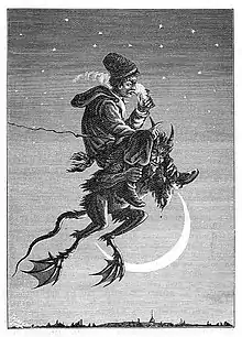 ![]() Коваль Вакула верхи на чортові. Ілюстрація до «Ночі перед Різдвом» Миколи Гоголя, 1887 р. | |