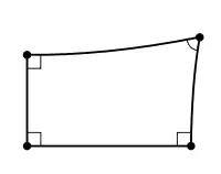 Нехай — чотирикутник Ламберта на абсолютній площині з прямими кутами у вершинах , і . Тоді