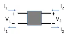 Сигнал, що подається на вхід чотириполюсника можна охарактеризувати вхідним струмом і напругою , а сигнал на виході характеризується вихідними струмом i напругою .