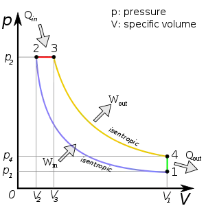 - 2—3 ізобарне підведення теплоти до робочого тіла;