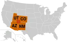 Чотири Кути на мапі США (червона зона)