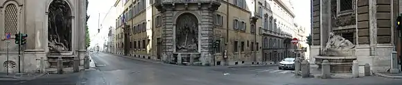 Не був винятком і ансамбль чотирьох фонтанів на перетині вулиць Пія та Феліче (нині — 20 вересня та Віа дель Квіріналє). Коли понтифік Сікст V зажадав гідно прикрасити цю площу, йому запропонували з таємним наміром отримати замовлення на скульптури — чотири різних скульптури. Сікст V наполягав на створенні фонтану. Йому запропонували фонтан посередині площі. Але цей варіант при його реалізації ставав у заваді вуличному руху. Тоді і виник остаточний варіант створити чотири фонтани, вмуровані у стіни навколишніх споруд, аби залишити вільним перетин шляхів. Це було дещо складне інженерне завдання, але реалізували саме його.