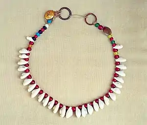 Жіночі і дівочі прикраси чувашів мають свої аналоги в костюмах поволзьких народів: марійців, ерзян, мокшан, удмуртів. Однією з популярних прикрас був нагрудник, часто — трикутної форми, невеликий і прикрашений бісером і монетами. Відмінності стосуються набору предметів, крою, орнаменту, поєднання кольорів, способу носіння, композиції, технічних прийомів виготовлення. Більшість цих відмінностей обмежена географічним розташуванням етнографічних груп — як на території Чувашії, так і за її межами.[4]