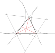 - трьох (або навіть двох) кіл, побудованих, як на діаметрі, на відрізку, що з'єднує основи внутрішньої і зовнішньої бісектриси, випущених з одного кута, — дві точки Аполлонія;