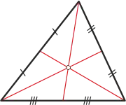- точка перетину трьох медіан трикутника, єдина точка трикутника така, що проведені через неї три чевіани ділять своїми кінцями сторони трикутника на шість відрізків. При цьому добуток довжин трьох з цих шести відрізків, які не мають спільних кінців, максимальний[2];